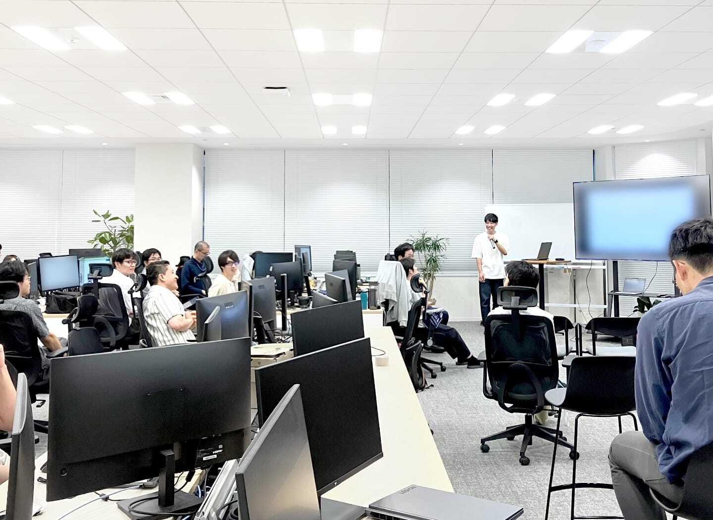 月に一度、エンジニア向けの知識共有会を開催しています。ここでは、各エンジニアが持ち回りで自身の開発テーマや最新ツールの知見を発表。エンジニア全体の知識向上はもちろん、カジュアルな質問や相談も活発に行われています。会の後に全社交流会が開催されることもあり、部署を超えたコミュニケーションが生まれる場にもなっています。